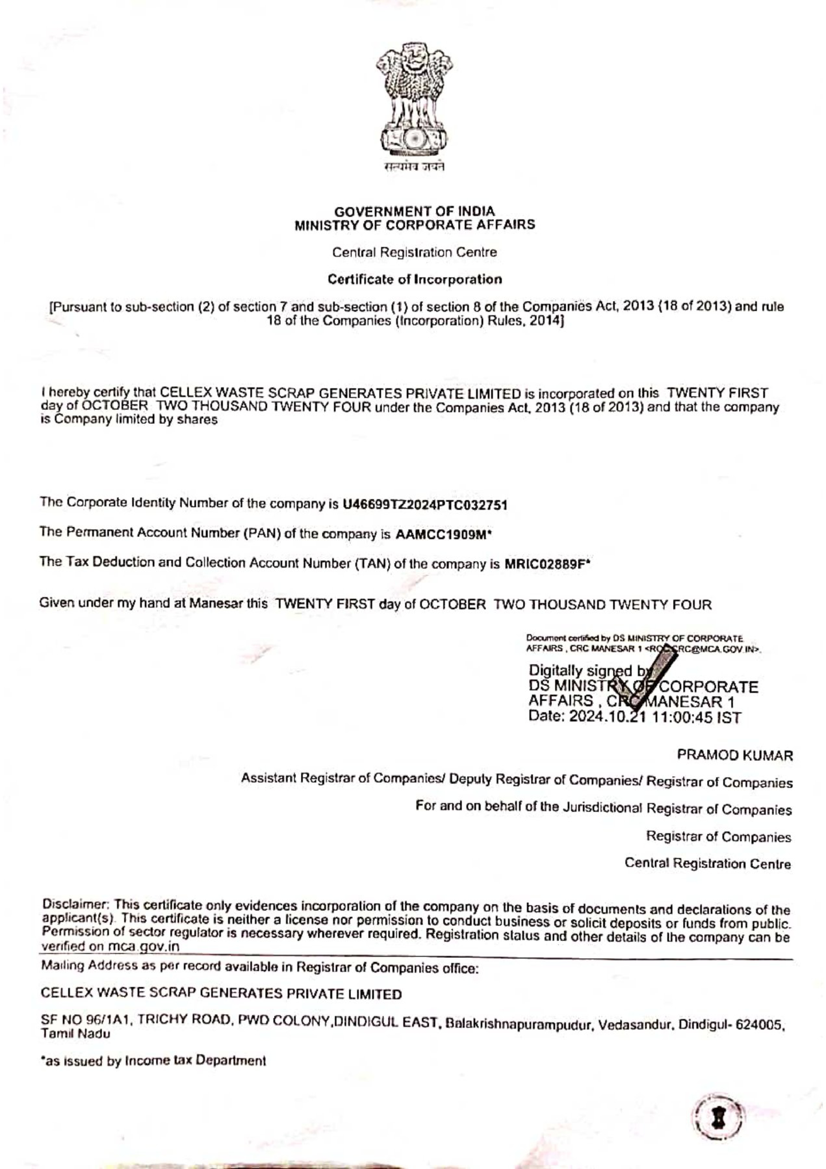Certificate of Incorporation
