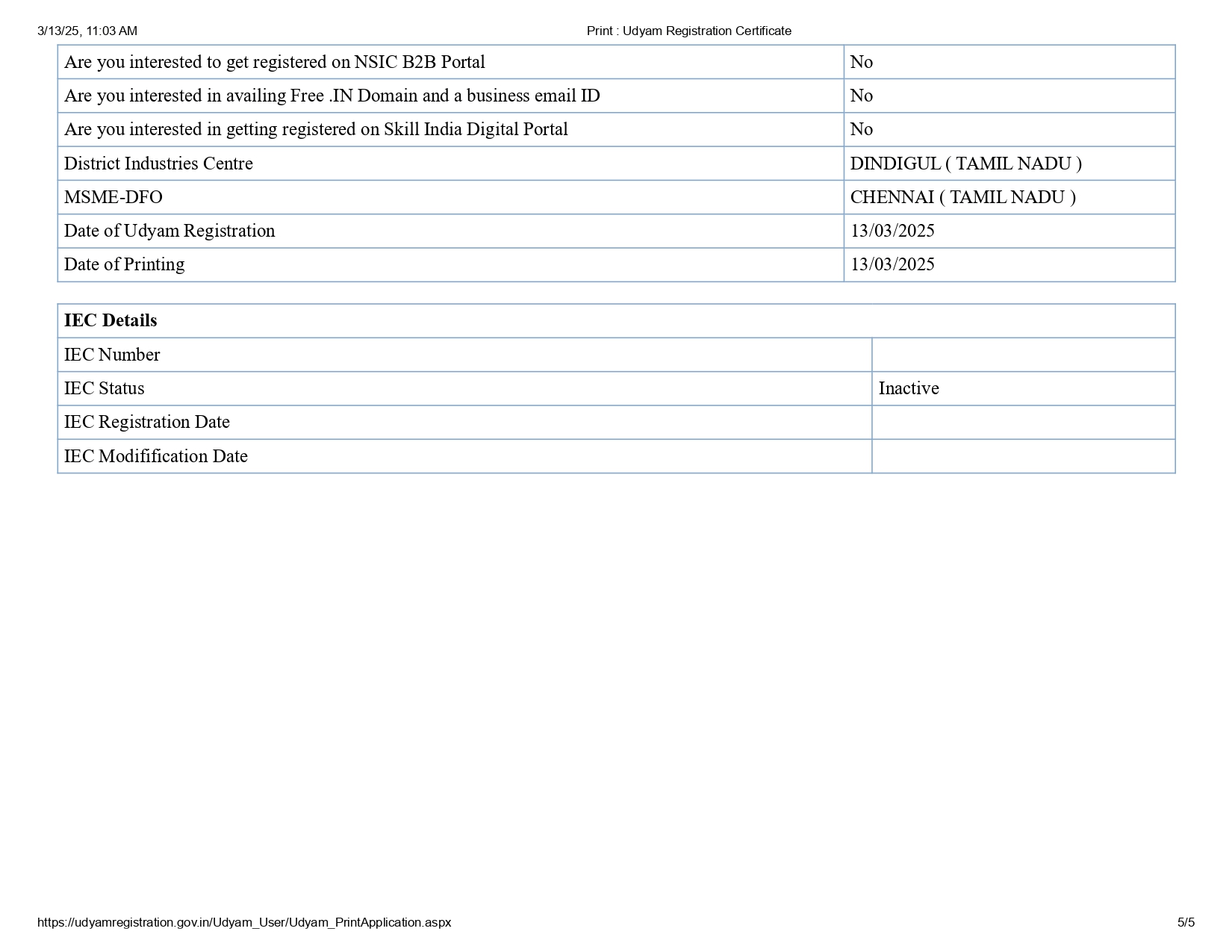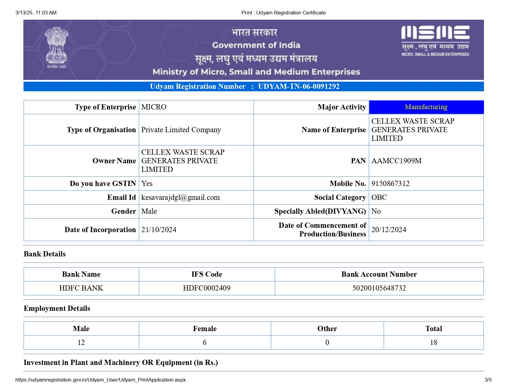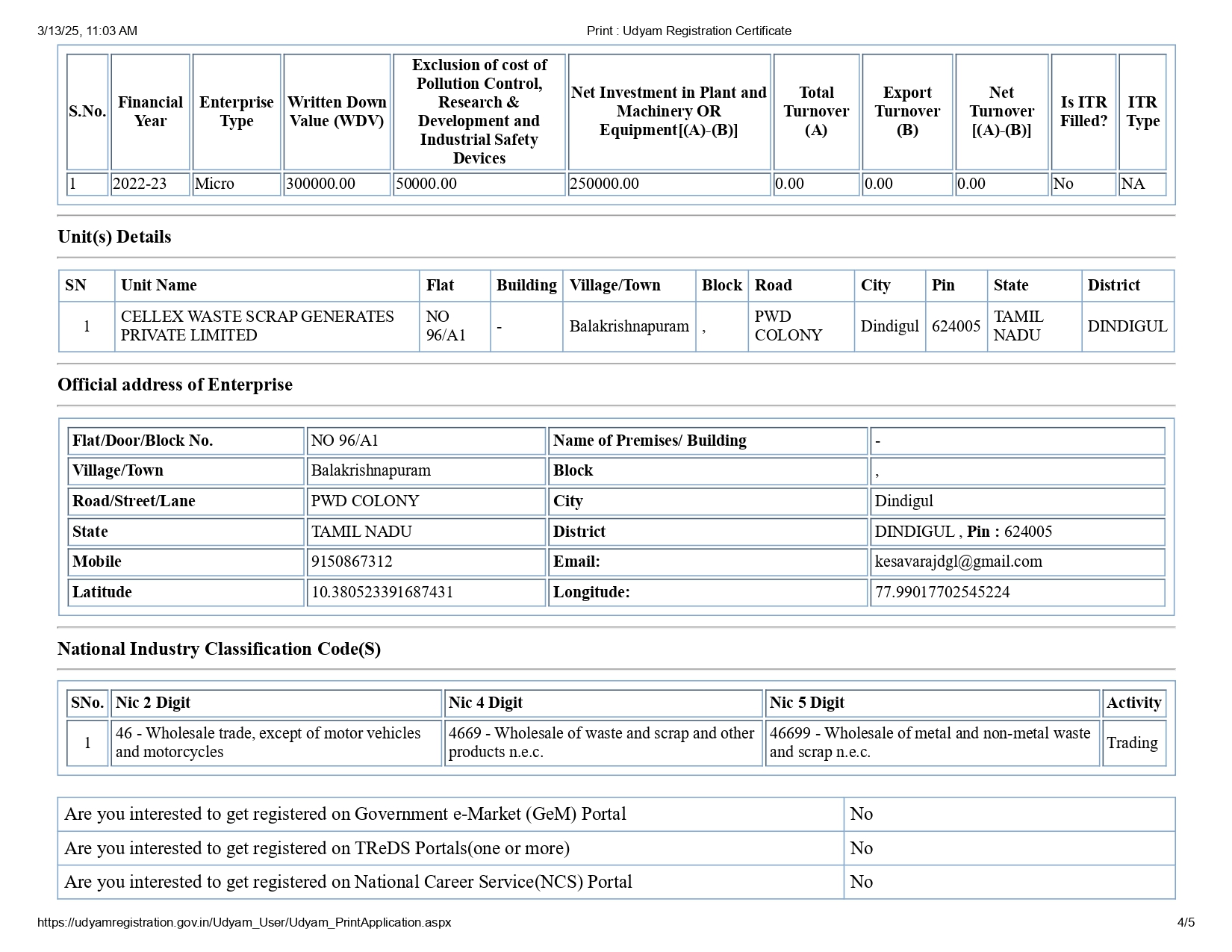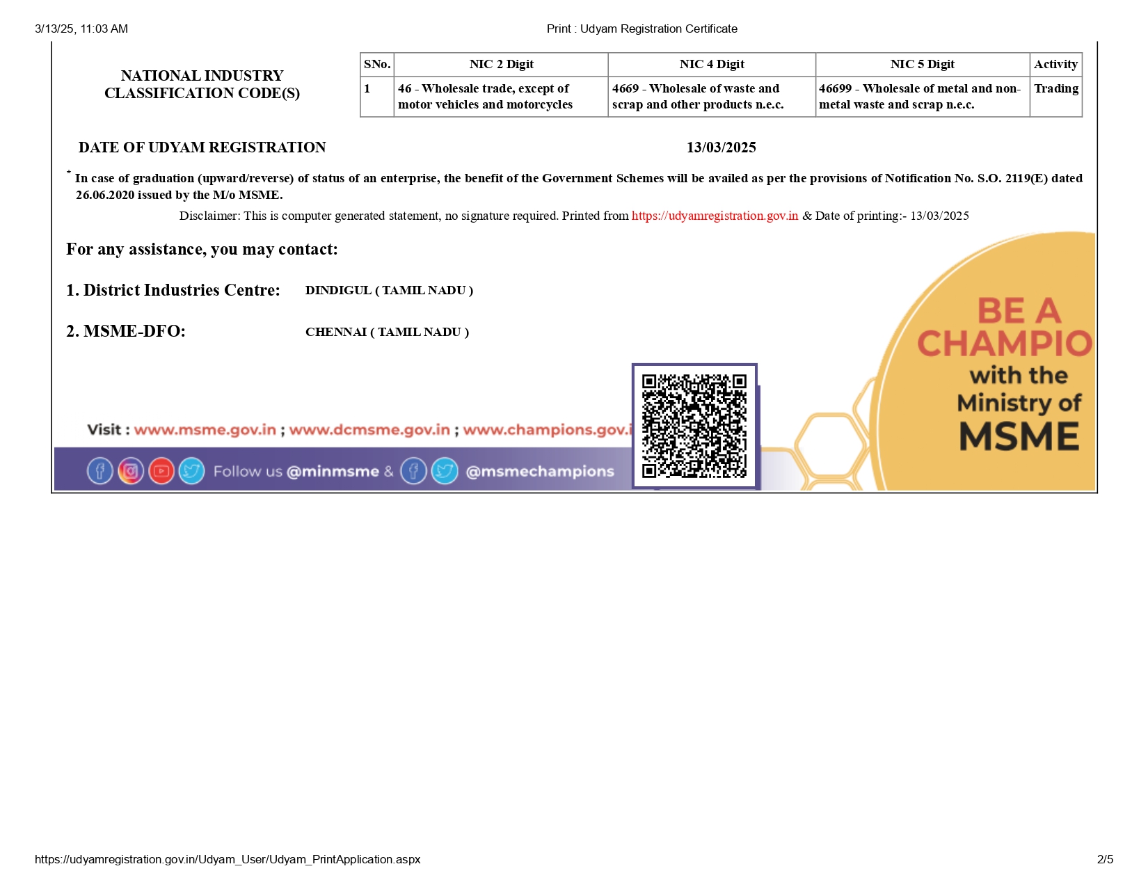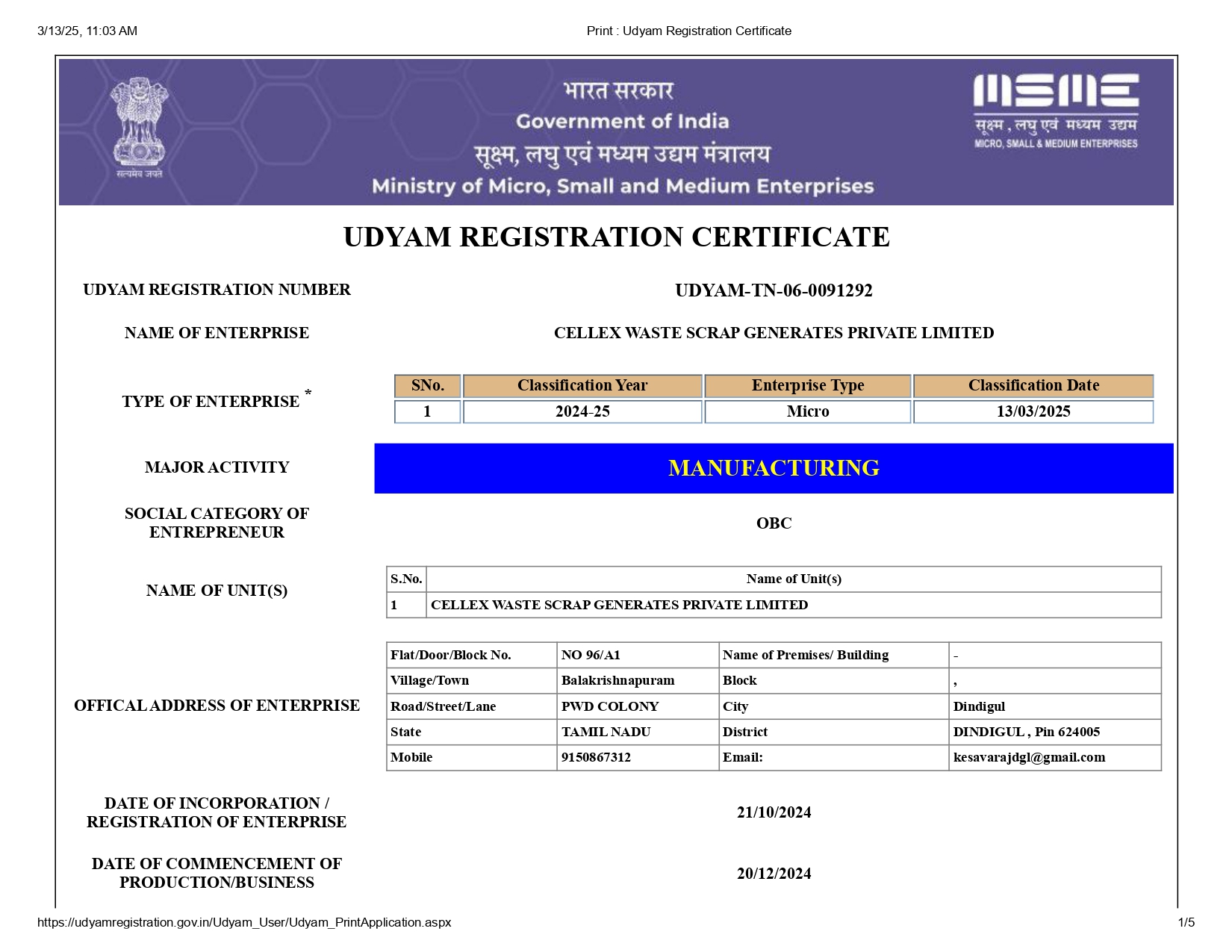 Udyam Registration Certificate